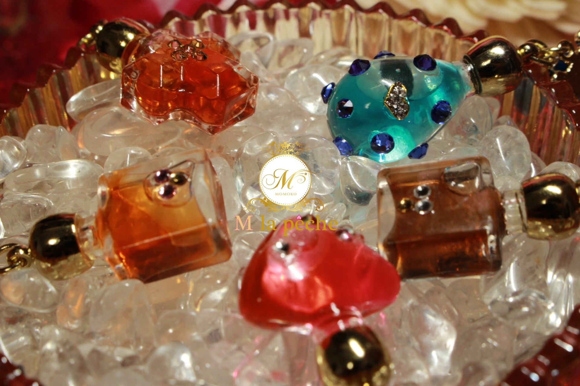 小瓶にはスワロフスキーがついていますので